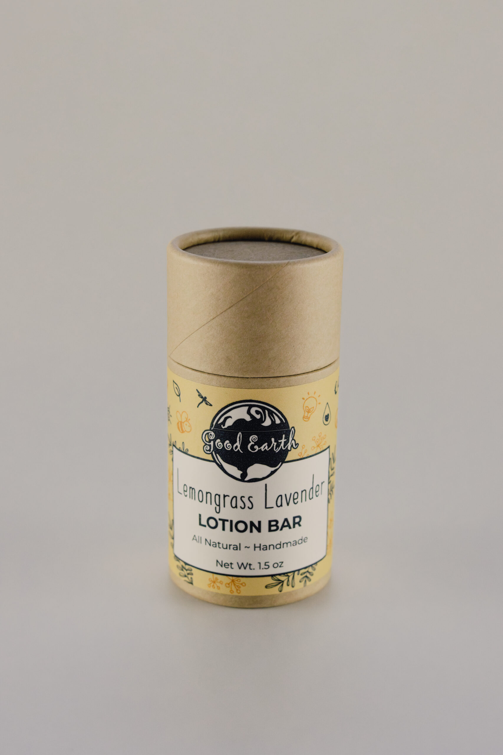 Our lotion bar is poured into a zero waste cardboard push-up container. 100% recyclable and biodegradable. One of our best selling items. Net Wt 1.5 oz Essential Oil Based + Palm Free + Handmade + Blissfully Pure & Simply Natural